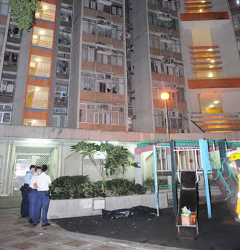 警員封鎖現(xiàn)場調(diào)查墮樓案。(圖片來源:大公報)