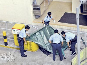 事發(fā)于28日早8時(shí)20分,身穿恤衫西褲的梁某離開(kāi)何文田寓所,走到紅磡樂(lè)民新村樂(lè)善樓8樓梯間徘徊,不一會(huì),他跨過(guò)一米高的矮墻一躍而下,直墮停車場(chǎng)入閘機(jī)旁,路旁兩米欄桿被壓毀呈“V“形凹陷。保安員吳某驚聞巨響視察,赫見(jiàn)梁某倒臥血泊奄奄一息,大驚報(bào)案,救護(hù)員到場(chǎng)檢驗(yàn)后證實(shí)梁當(dāng)場(chǎng)斃命,毋須送院。