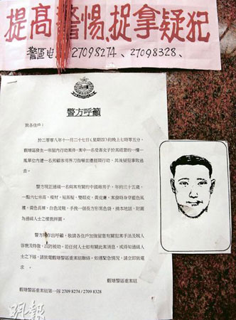 警方1日晨返回土瓜灣道鳳姐兇案現(xiàn)場,向街坊派發(fā)問卷,至1日晚,西九龍總區(qū)刑事總部總督察鐘志明再率領30多名重案組探員登上涉案鳳樓調查,又持一份區(qū)內鳳姐名單,分成多組逐戶拍門派發(fā)問卷。有鳳姐指出,探員曾詢問有否見過一個年約30余歲、5呎10吋高、身穿黑衣黑褲及背斜袋的可疑男子出沒,又叮嚀她們要小心門戶。