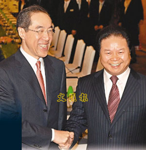 在會議開始前,“兩兄弟”即主動向在場采訪的記者拜個早年,又預期會議定必成功。湯炳權笑說,很高興香港在回歸10周年有輝煌成就,而香港于07年經(jīng)濟又快又好地發(fā)展,人民安居樂業(yè)。他坦言,此際要說的還是以往那一句:“香港好,廣東好;廣東好,香港更好!