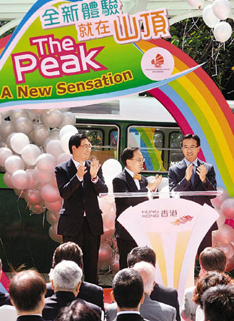 為配合該項計劃,有關(guān)單位更為山頂注入了兩項新元素,分別是由古董纜車車廂改裝而成的香港旅游發(fā)展局山頂旅客咨詢中心及香港杜莎夫人蠟像館的香港特區(qū)行政長官曾蔭權(quán)蠟像,兩者均于7日揭幕。