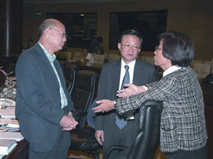 圖:曹其真、徐偉坤、鄭志強(qiáng)交換意見。(圖片來源:澳門日報(bào))