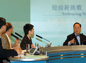 曾蔭權(quán)重申,特區(qū)政府堅(jiān)持“大市場(chǎng)、小政府”的原則,但金融市場(chǎng)有需要時(shí),特區(qū)政府必定采取快而準(zhǔn)、到位及夠力度的行動(dòng),但沒(méi)有需要時(shí),特區(qū)政府必定退出。