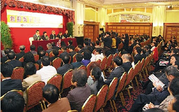 張銘清在講座上表示,今年3月下旬以來,臺灣局勢發(fā)生積極變化,兩岸關(guān)系發(fā)展出現(xiàn)難得的歷史機遇。主要表現(xiàn)在:一、大陸方面提出了新形勢下發(fā)展兩岸關(guān)系的重要主張,兩岸雙方開始出現(xiàn)良性互動;二、海協(xié)會與臺灣;鶗凇熬哦沧R”的基礎(chǔ)上恢復(fù)制度化協(xié)商,并取得實際成果;三、兩岸經(jīng)貿(mào)交流和人員往來取得新突破,為兩岸關(guān)系注入了穩(wěn)定的因素和發(fā)展的動力;四、臺灣體育健兒到北京參加奧運會和殘奧會,兩岸同胞共圓中華民族百年奧運夢想。