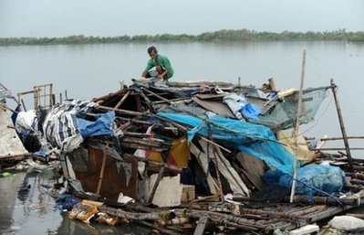 臺風“康森”風速達到每小時120公里,大風刮倒電纜,使得包括首都馬尼拉在內的呂宋島全島電力中斷,馬尼拉的高架地鐵線路停止運營,當?shù)厥忻裆钍艿絿乐赜绊憽?/p>
