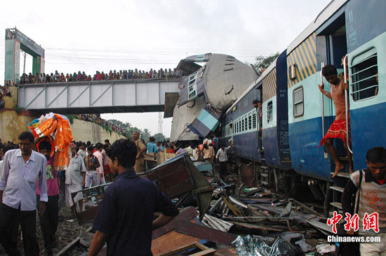 兩個(gè)月前,一列由東部西孟加拉國(guó)邦首府西加爾各答開(kāi)往西部大城市孟買的快速客運(yùn)火車,駛至加爾各答以西約150公里的一條小鎮(zhèn)時(shí),13節(jié)車廂突然出軌,一列貨運(yùn)火車迎面駛至,把客車其中4節(jié)車廂撞至嚴(yán)重變形扭曲,造成145人死亡。