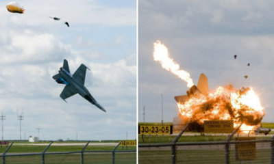 據(jù)悉,這架戰(zhàn)機是在做超低空飛行動作時墜毀的。目擊者說,飛行員是在飛機離地面30米處被彈出機艙,拉開降落傘成功逃生。