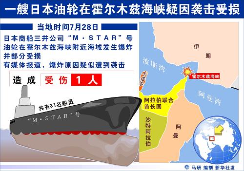 日本國土交通省28日發(fā)布通報,日本商船三井公司所屬M·STAR號大型油輪當地時間28日零時30分左右在行經霍爾木茲海峽時發(fā)生爆炸,事發(fā)海域屬于阿曼領海。爆炸導致一名船員受傷,船體后部受損,但沒有造成原油泄漏。有船員稱,油輪疑似遭到襲擊。爆炸事件發(fā)生后,M·STAR號轉而駛往阿聯酋富查伊拉港。