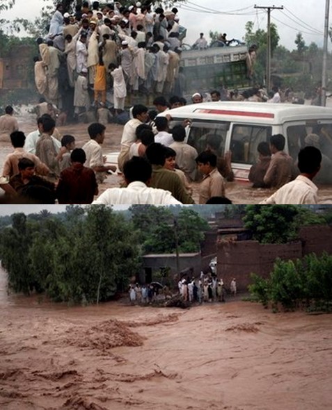在巴西北部的斯瓦特山谷,人們被迫在齊膝深的洪水中趟著走,有的地方洪水已經(jīng)齊腰深。查沙達(Charsadda)鎮(zhèn)一個新建成不久的大壩無法抵擋洪水來襲的威力,發(fā)生決堤。聯(lián)合國官員預(yù)計,大約5000戶民居因此被洪水淹沒,數(shù)千人被圍困。
