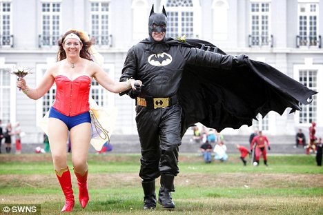 新郎沃恩表示,神奇女俠與蝙蝠俠是他與妻子從小就喜歡的超人形象,希望借婚禮完成自己年幼時(shí)的心愿。而且該婚禮花費(fèi)比普通婚禮花費(fèi)要省下上千英鎊,“神奇女俠”裝扮花去100英鎊,“蝙蝠俠”服飾只花去180英鎊。