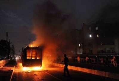 卡拉奇市內(nèi)一片恐怖景象,身份未明的武裝分子把襲擊目標(biāo)對(duì)準(zhǔn)了平民,殘忍地槍殺他們。十余處店鋪遭搶劫和縱火,和20多輛汽車遭焚燒。