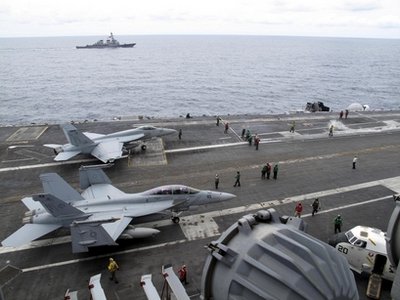 據(jù)信,美國(guó)核動(dòng)力航母“喬治•華盛頓”號(hào)將會(huì)與一艘導(dǎo)彈驅(qū)逐艦和獵雷艦在越南港口城市峴港會(huì)合。