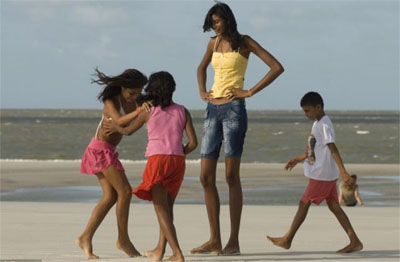 中新網(wǎng)8月31日電 據(jù)外媒報道,巴西一名女孩年僅14歲,身高卻達(dá)2米多,站在同學(xué)之間仿佛鶴立雞群,每每引來眾多目光。