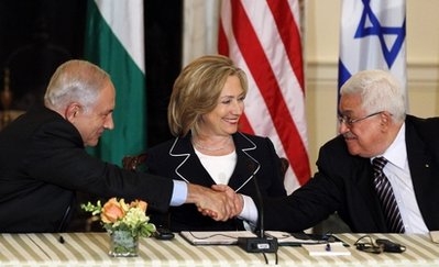 在美國(guó)國(guó)務(wù)卿希拉里的主持下,巴勒斯坦領(lǐng)導(dǎo)人阿巴斯和以色列總理內(nèi)塔尼亞胡自2008年年底后第一次坐在同一張談判桌前,著手就以色列定居點(diǎn)、耶路撒冷歸屬等最終地位問題展開直接談判,以結(jié)束雙方數(shù)十年的沖突并實(shí)現(xiàn)“兩國(guó)方案”。
