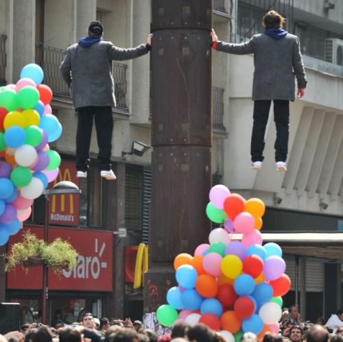 據(jù)報道,今年9月18日是智利獨立200周年的紀(jì)念日,這對在智利國內(nèi)很出名的雙胞胎兄弟尼古拉斯(Nicolas Luisetti Olhaberry)和約翰(John Paul Olhaberry)為了向這個特殊的節(jié)日致敬,提前用表演“漂浮術(shù)”的方式進行慶祝。