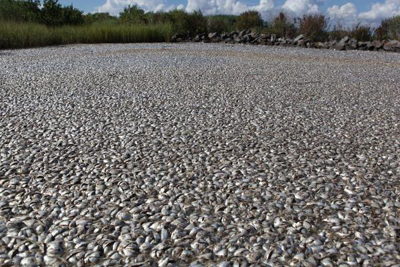 美國(guó)路易斯安那州的一片靠近墨西哥灣的水域近日成了令人瞠目結(jié)舌的“死魚之!保翰挥(jì)其數(shù)的各種死魚、螃蟹和海鰻的尸體將水面蓋得嚴(yán)嚴(yán)實(shí)實(shí)。當(dāng)?shù)仉娨暸_(tái)記者甚至在這片位于密西西比河入海口的水域中發(fā)現(xiàn)了一頭鯨魚的尸體。各方因此呼吁當(dāng)?shù)卣痛苏归_調(diào)查。