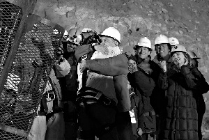 12日晚,從營救行動正式開始,智利總統(tǒng)皮涅拉就一直守在現(xiàn)場。當(dāng)阿瓦洛斯從“膠囊”中走出來時,守在洞口的皮涅拉立即與這名渾身還臟兮兮的礦工緊緊擁抱。