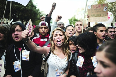 15日下午,全國(guó)300多所中學(xué)的學(xué)生開始罷課,加入到全國(guó)范圍的抗議中來。在巴黎等地區(qū),學(xué)生們情緒激動(dòng),并同維持秩序的警察發(fā)生沖突。防暴警察向?qū)W生投擲催淚彈,并拘捕了200多人。法國(guó)內(nèi)政部長(zhǎng)霍特福克斯呼吁警方和示威者保持克制,防止示威演變成騷亂。