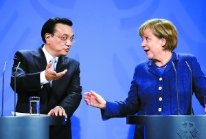 “中德關(guān)系不僅對我們雙邊,而且對中歐乃至于對世界都有重要意義!崩羁藦娊榻B說,剛才我與默克爾總理舉行了富有成果的會談,討論和規(guī)劃了未來一個時期中德合作的思路與重點,就深化中德戰(zhàn)略伙伴關(guān)系達成重要共識。我們一致同意保持兩國總理年度會晤機制,加強各層次磋商交流,推進經(jīng)貿(mào)、農(nóng)業(yè)、城鎮(zhèn)化、人文等領(lǐng)域合作,密切兩國人民的相互了解和友誼。這些舉措將有力推動兩國關(guān)系發(fā)展。