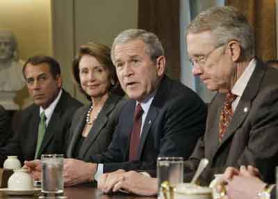 中新網(wǎng)1月24日電 美國(guó)聯(lián)邦儲(chǔ)備委員會(huì)22日上午突然宣布降息0.75厘,布什總統(tǒng)下午緊急約見(jiàn)國(guó)會(huì)兩黨領(lǐng)袖,呼吁國(guó)會(huì)采取合作,盡快通過(guò)一攬子經(jīng)濟(jì)刺激方案,防止美國(guó)經(jīng)濟(jì)步入衰退。