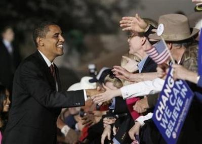 美國當(dāng)?shù)貢r間20日,奧巴馬在艾奧瓦州與支持者們握手。