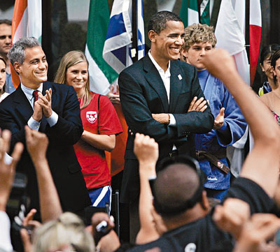 奧巴馬出席芝加哥申辦奧運的活動,支持者熱情歡呼。