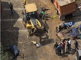 毒梟槍手掃射,連馬匹也中槍倒地。