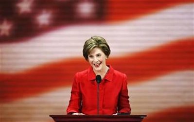 “第一夫人”勞拉出場為布什總統(tǒng)的視訊演講擔(dān)任引言。