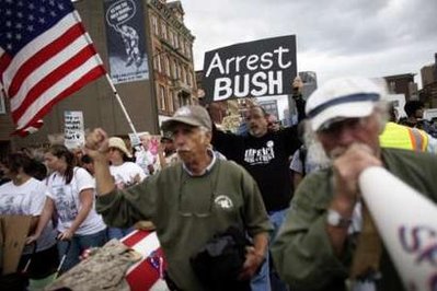 示威者高舉“逮捕布什”的口號(hào)游行。