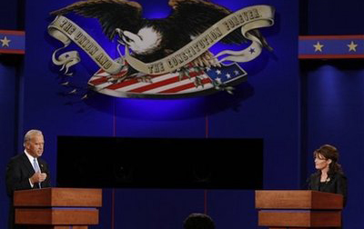 中新網(wǎng)10月3日電 綜合報道,當?shù)貢r間2日晚,美國副總統(tǒng)候選人辯論在密蘇里州的華盛頓大學展開。共和黨副總統(tǒng)候選人佩林與民主黨副總統(tǒng)候選人拜登就伊拉克戰(zhàn)爭問題展開激烈辯論。