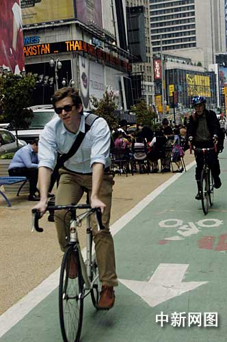 但如今,道格拉斯成為了紐約白領騎車族中的一員!笆″X,方便,速度不慢,還能鍛煉身體”,道格拉斯說。