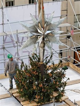 洛克菲勒中心從1933年,美國(guó)經(jīng)濟(jì)大蕭條期間,豎立第一顆圣誕樹(shù),這項(xiàng)傳統(tǒng)延續(xù)了70多年,今年的圣誕樹(shù)是一株高21米的挪威翠松,由紐澤西的漢米頓家族所贈(zèng),上星期就已經(jīng)開(kāi)始架設(shè)在中心廣場(chǎng),
