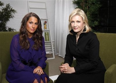 前應召女郎阿什莉.杜普利(左)接受ABC電視臺主持人黛安.索耶的采訪。