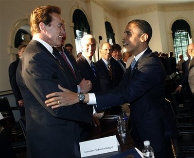 奧巴馬與加利福尼亞州州長共和黨人施瓦辛格會(huì)面