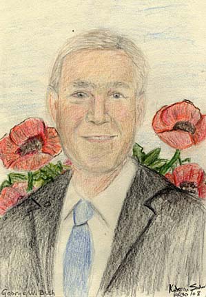 參賽作品中有一幅畫(huà)讓評(píng)委們印象深刻,這幅畫(huà)出自紐約10歲女孩卡特麗娜·薩德弗之手,她畫(huà)的是紅色背景下的總統(tǒng)布什。大紅色背景使得整幅畫(huà)讓人眼前一亮。