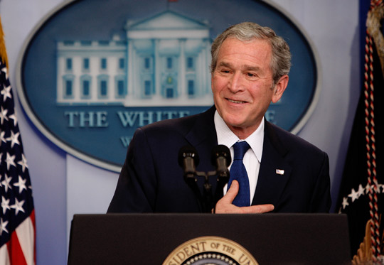習(xí)慣為別人取外號的布什在一開始就稱今天的記者會為“最終臨別采訪”,并對八年來一直在白宮報道他的白宮常駐記者們表達(dá)了充分的感謝。布什積極評價白宮新聞處八年來的工作及角色。在布什兩個總統(tǒng)任期內(nèi),白宮新聞秘書多次更換,令人記憶猶新的是,去年的美國總統(tǒng)大選期間,布什的前任白宮新聞秘書麥克萊倫公開出書,抨擊布什在伊拉克戰(zhàn)爭中撒謊。當(dāng)然,這位牛仔風(fēng)格的總統(tǒng)在受到媒體批評之后有時候也會在這個位于白宮橢圓辦公室西側(cè)的新聞發(fā)布廳表達(dá)自己的憤怒和發(fā)發(fā)牢騷。