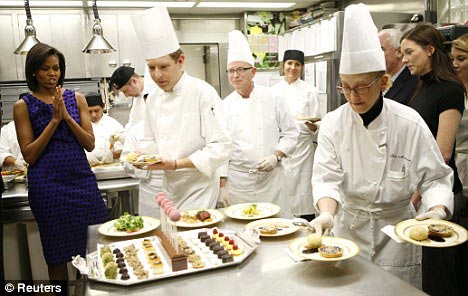 據(jù)悉晚宴開始前,“第一夫人”米歇爾為了表示對來賓的尊重,親自前往廚房查看晚宴的籌備情況。