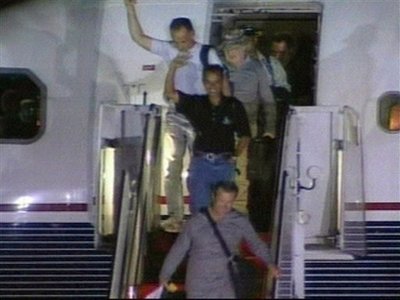中新網(wǎng)4月16日電 據(jù)美聯(lián)社報道,曾與索馬里海盜“親密接觸”的美國“梅爾斯克•阿拉巴馬”號(Maersk Alabama)船員于當(dāng)?shù)貢r間16日凌晨自肯尼亞乘坐專機返回美國,受到熱情的歡迎。