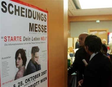 這次“離婚展”27日維也納老城區(qū)的瑪莉奧特旅館拉開(kāi)帷幕。參加“離婚展”的律師、仲裁人在權(quán)利、義務(wù)、生活費(fèi)和兒童監(jiān)護(hù)方面給予參觀者建議。他們還可以向?qū)<易稍?xún)?nèi)绾胃玫闹亟M家庭。