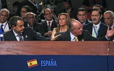 在這種情況下,坐在薩帕特羅身后的西班牙國王卡洛斯突然向前探身,告訴查韋斯,“你為什么還不住嘴?”據稱,卡洛斯使用的語言是西班牙人一般用來和熟人聊天或是教訓孩子的。薩帕特羅之后表示,表達個人意見“不應該冒犯其他人”。