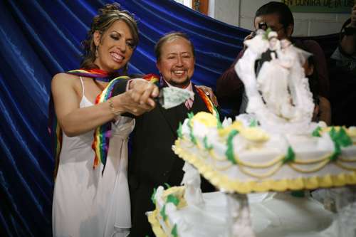 中新網(wǎng)5月19日電 一對(duì)均做了變性手術(shù)的新人17日在墨西哥城舉行婚禮,成為該國(guó)有史以來第一對(duì)合法結(jié)婚、組織家庭的變性人。墨西哥一向是一個(gè)作風(fēng)保守、堅(jiān)持傳統(tǒng)價(jià)值觀的國(guó)家,但在外來文化和思潮影響下,很多守舊觀念已被打破,這宗婚事便是其中一個(gè)鮮明例子。