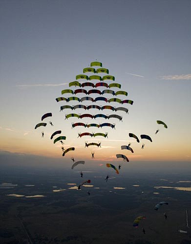 日前,100名高空跳傘運(yùn)動(dòng)員在美國(guó)佛羅里達(dá)州千米高空進(jìn)行特技表演,組成了世界上最大的鉆石菱形圖案,成功打破了2005年由德國(guó)85名跳傘運(yùn)動(dòng)員創(chuàng)造的世界紀(jì)錄。