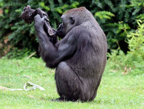 11歲的母猩猩加納上周六在猩猩園里抱著她已夭折的三個月大的兒子克勞迪奧,她將失去生命跡象的小猩猩舉起,目光里流露出震驚和不解,她無法接受她的孩子已死亡的事實(shí)。母猩猩所表現(xiàn)出來的不可抑制的痛苦與任何一位失去孩子的母親所感受到的悲痛非常相似。盡管自然界有它的殘酷性,但加納和她兒子克勞迪奧打動人心的場景看起來表明,動物王國的成員也能像人類一樣感受到失去親人的痛苦。