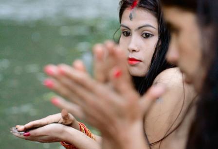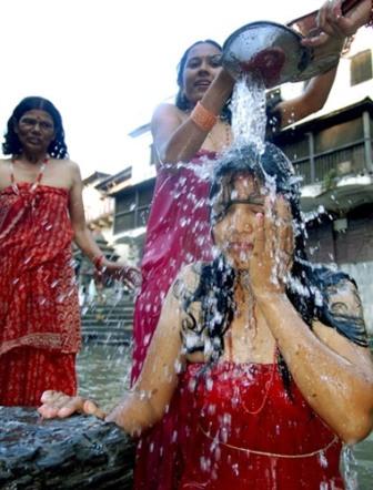 印度教女子沐浴祈愿找郎君