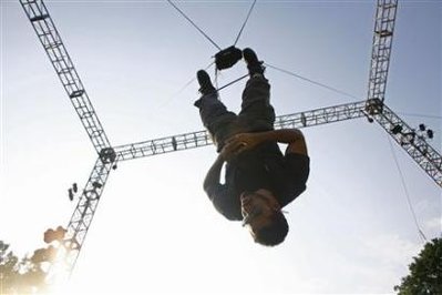 中新網(wǎng)9月23日電 綜合報道,美國魔術師大衛(wèi)•布萊恩22日開始挑戰(zhàn)年度難度最大的表演:在紐約中央公園距地50英尺倒掛3天。