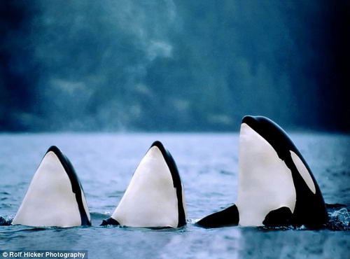 據(jù)英國(guó)《每日郵報(bào)》報(bào)道,攝影師奧爾夫-希克近日在加拿大溫哥華附近海域拍下了三頭野生殺人鯨(學(xué)名為虎鯨)在水中群舞的照片。