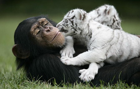 猩猩與白虎幼仔
