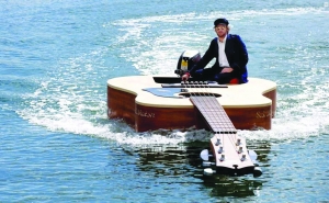 據(jù)報道,喬什的這艘“吉他船”名叫“馬頓號”,馬頓公司是澳大利亞的吉他制造廠商,而這艘“吉他船”正是由該公司設計定做的,它上面裝有舷外馬達,可以在水中自由地航行。