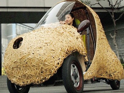 據(jù)悉,該車可乘1人,愛稱“Bamgoo”源于竹子的英文“bamboo”。它是由 45根竹子加工成900張長(zhǎng)2米、厚1厘米的薄板后,再由竹器藝人花費(fèi)1個(gè)月時(shí)間編制出了車體。