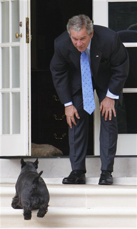 據(jù)英國媒體11月16日?qǐng)?bào)道,美國總統(tǒng)布什在白宮養(yǎng)著一條名叫“巴尼”的蘇格蘭犬。這條寵物狗看起來溫馴可愛,但在最近幾周里卻兩次將人咬傷。白宮的官員15日表示,“巴尼”將會(huì)先于整個(gè)“第一家庭”撤離白宮。